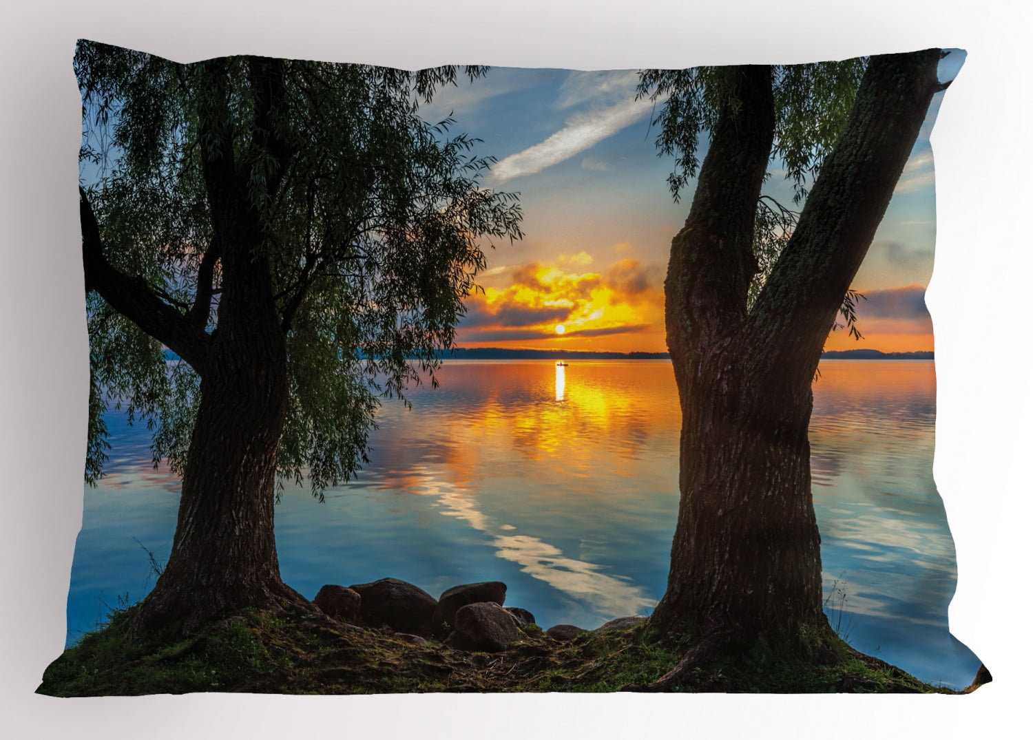 Willow Tree Pillow Sham Dramatic Scenery Nature View Sunrise Over The Lake Reflection On The Water Decorative Standard Size Printed Pillowcase 26 X 20 Multicolor By Ambesonne Walmart Com